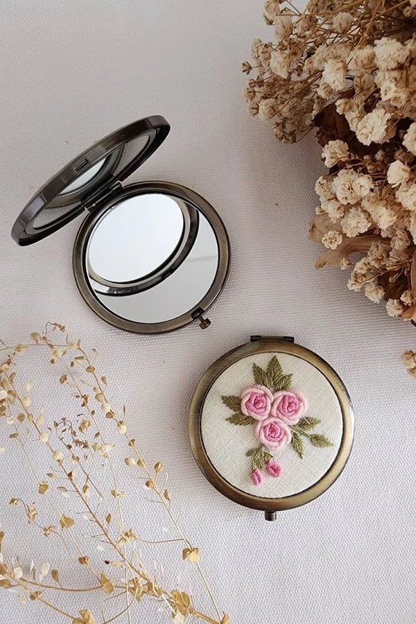 Embroidered Compact Mirror - Three Roses