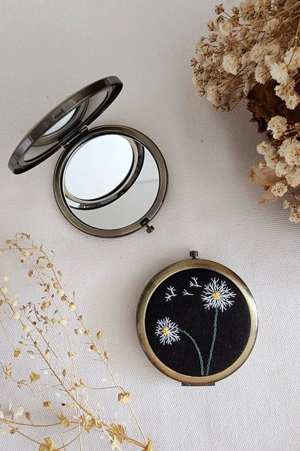 Embroidered Compact Mirror - Dandelion