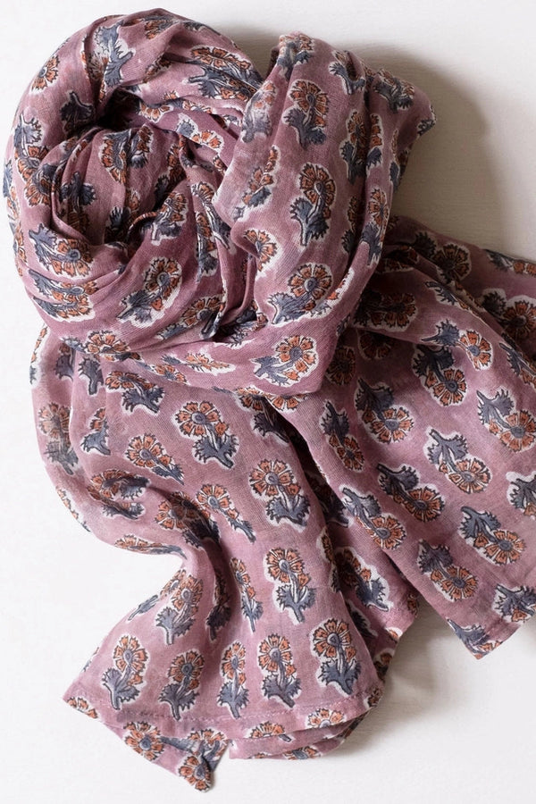 Malin Mauve Block Printed Scarf