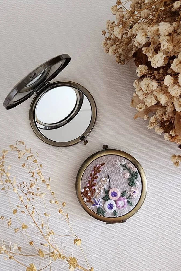 Embroidered Compact Mirror - Flower Garden