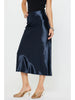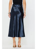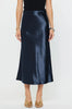 Satin slip midi skirt with shiny satin-like woven fabric.