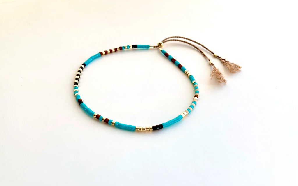 These thin and sparkly bracelets are beaded by hand with high quality Japanese seed beads, which are cylinders (giving you a look that cannot be achieved with regular seed beads).