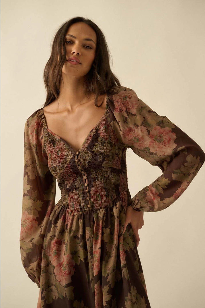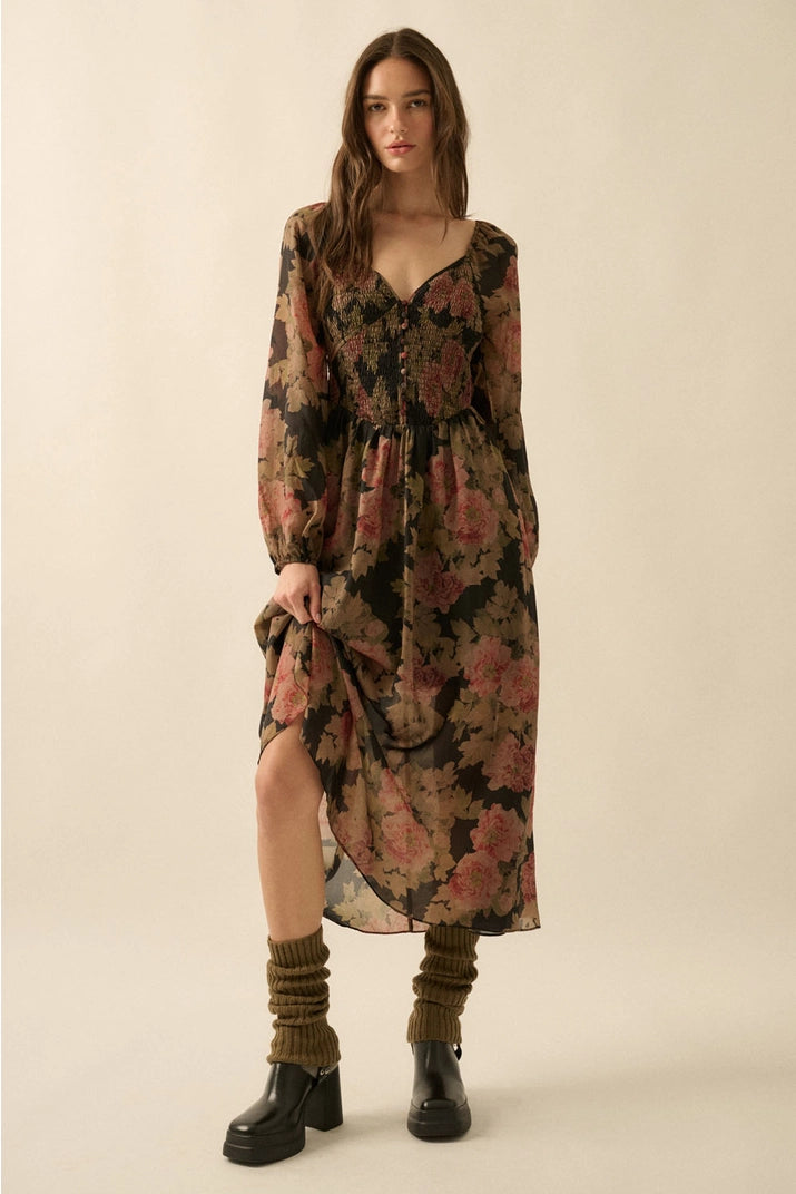 Floral-print woven midi dress