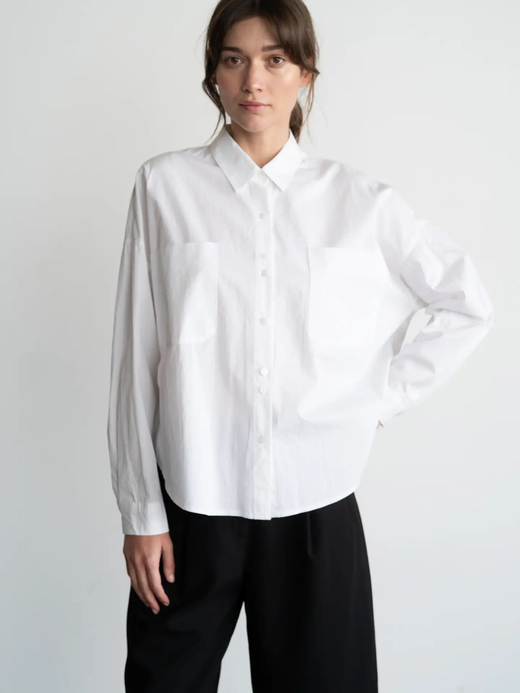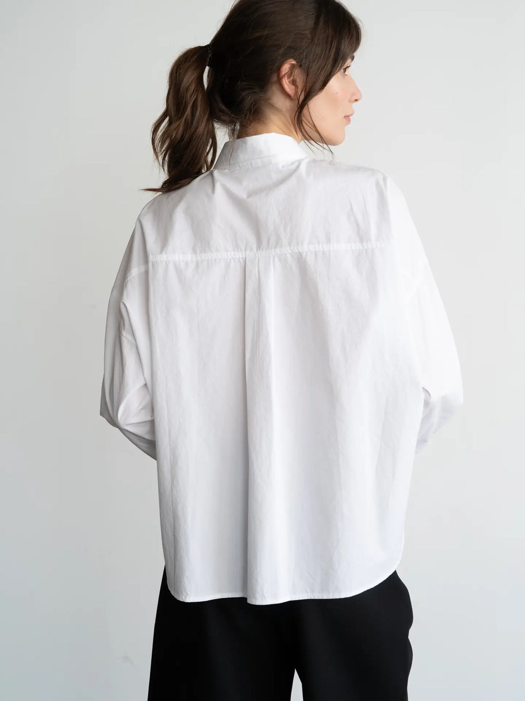Relaxed, oversized silhouette with dropped shoulders.