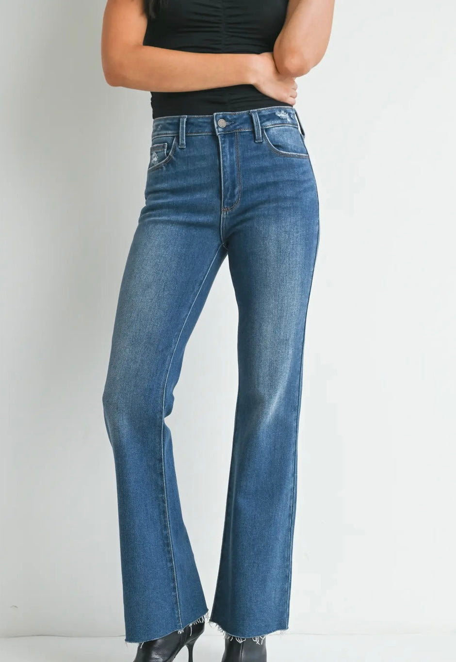 Dark Denim - Flare Jean with Hem Detail