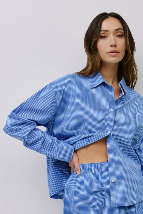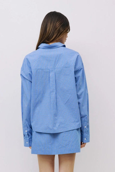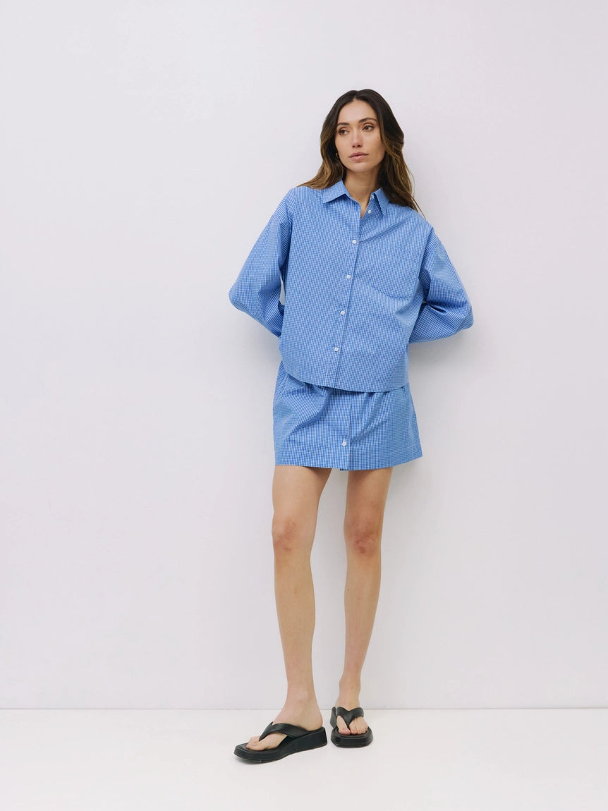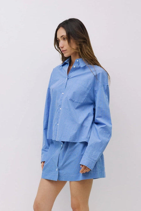 The Gates Top is a loose-fit gingham shirt with a classic collared neckline and a front breast pocket for a casual yet polished look.