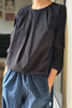 A nod to the ever-evolving blouse, the Julienne Top features thoughtful design details that speak for themselves. A round neckline with a front keyhole closure sits at the center of delicate pleating and charming raglan sleeves. It maintains a relaxed, slightly curved shape, making it easy to wear both tucked or untucked. Its lightweight cotton texture is crisp and airy—a dreamy staple for dressing up or keeping it casual.