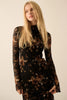 Lettuce-edge finish at neckline, cuffs, and hem.