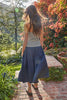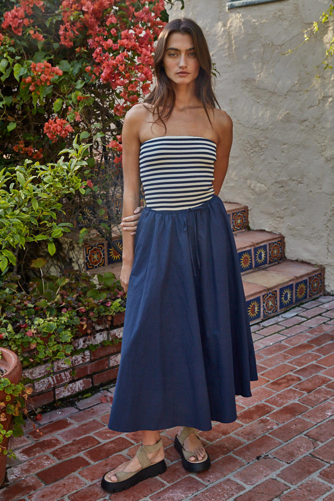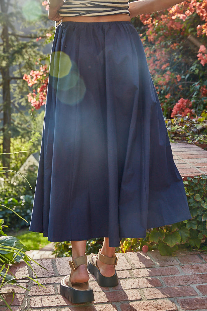 Color: NavyFabric Content: 100% Woven Cotton Waist Drawstring Flare Midi Skirt Rayon Lining