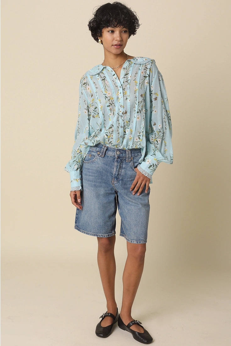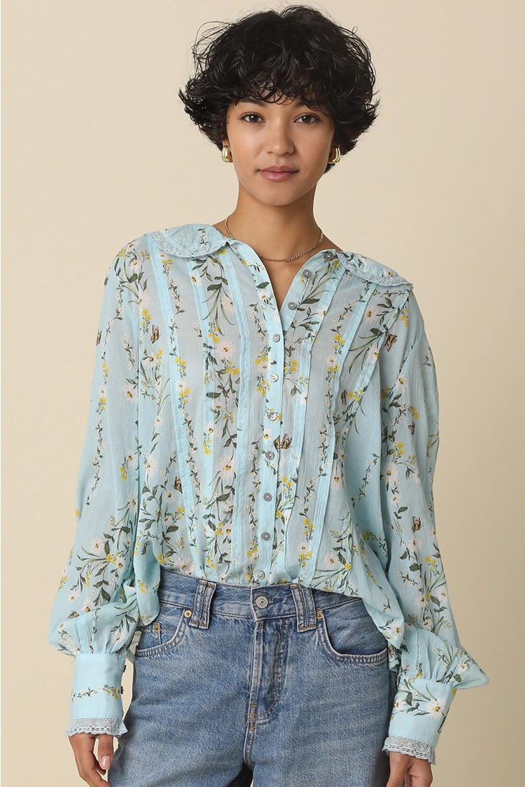 Floral Pintuck Blouse features delicate pintuck detailing along the front for a structured, textured look and a lightweight fabric with lace trimmed finishing collars and cuffs for a relaxed, feminine silhouette.