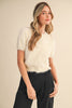 Fuzzy knit short sleeve sweater cardigan Round neckline Button down placket Pearl buttons Short puff sleeves Relaxed, waist length fitFabric Content: 75% nylon, 15% acrylic, 10% poly