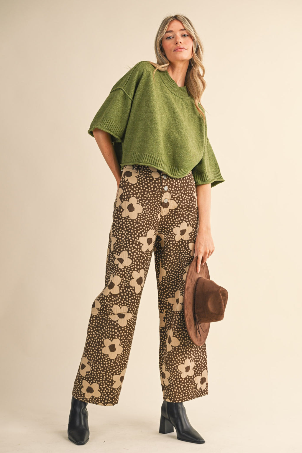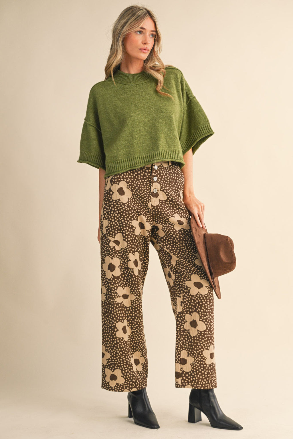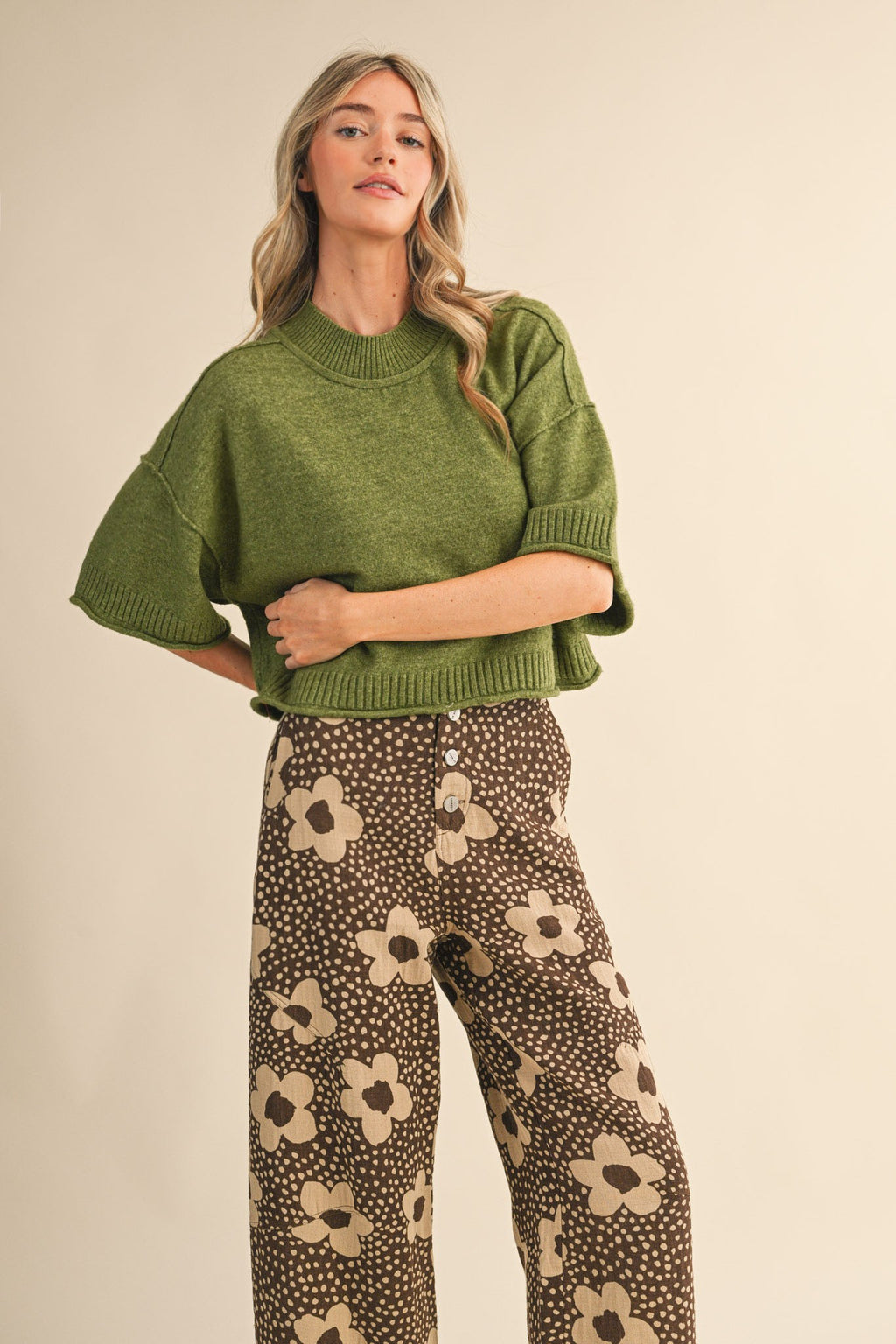 Marla Short Sleeve Sweater - Olive Green
