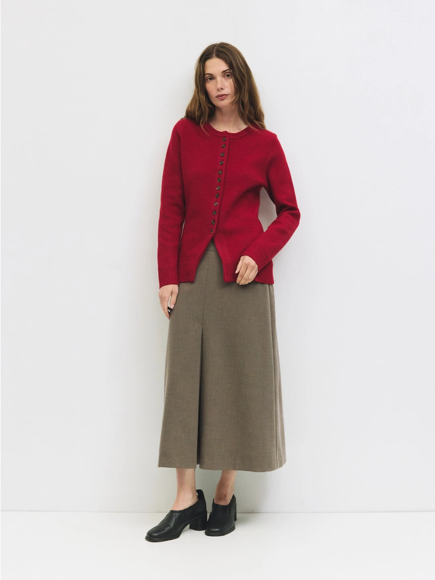 The Priya Cardigan is a form-fitting layer crafted from a midweight knit, featuring a classic crew neckline and long sleeves for a streamlined silhouette.