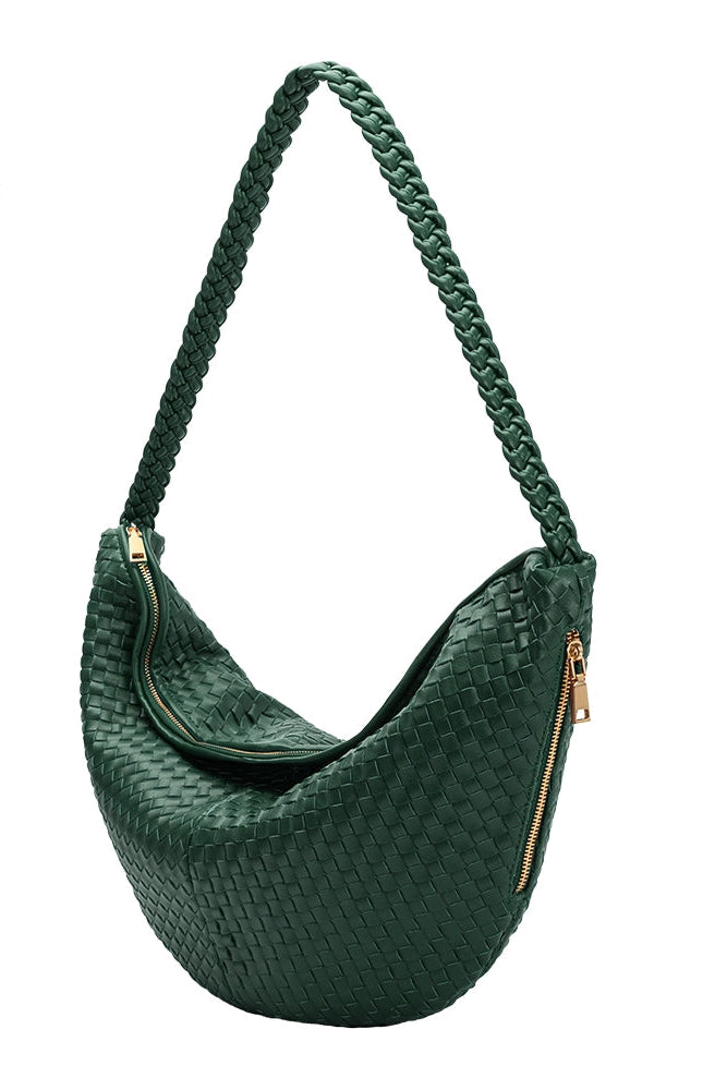 Expertly crafted in a slouchy and crescent shape, the Raquel hobo bag boasts a stylish yet functional design. With a braided shoulder strap for added comfort, this woven bag is perfect for everyday use. Wear it as a crossbody or as a shoulder bag.