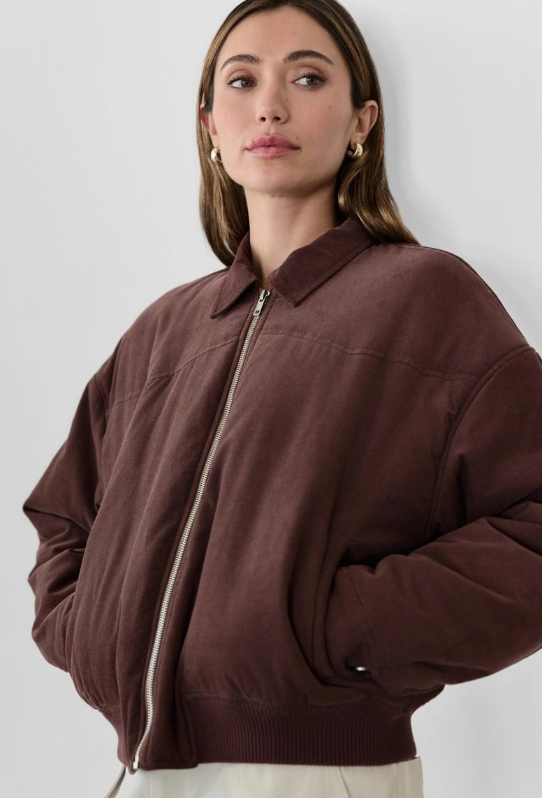 The cropped length is complemented by a ribbed band and padded design providing both comfort and a structured fit.