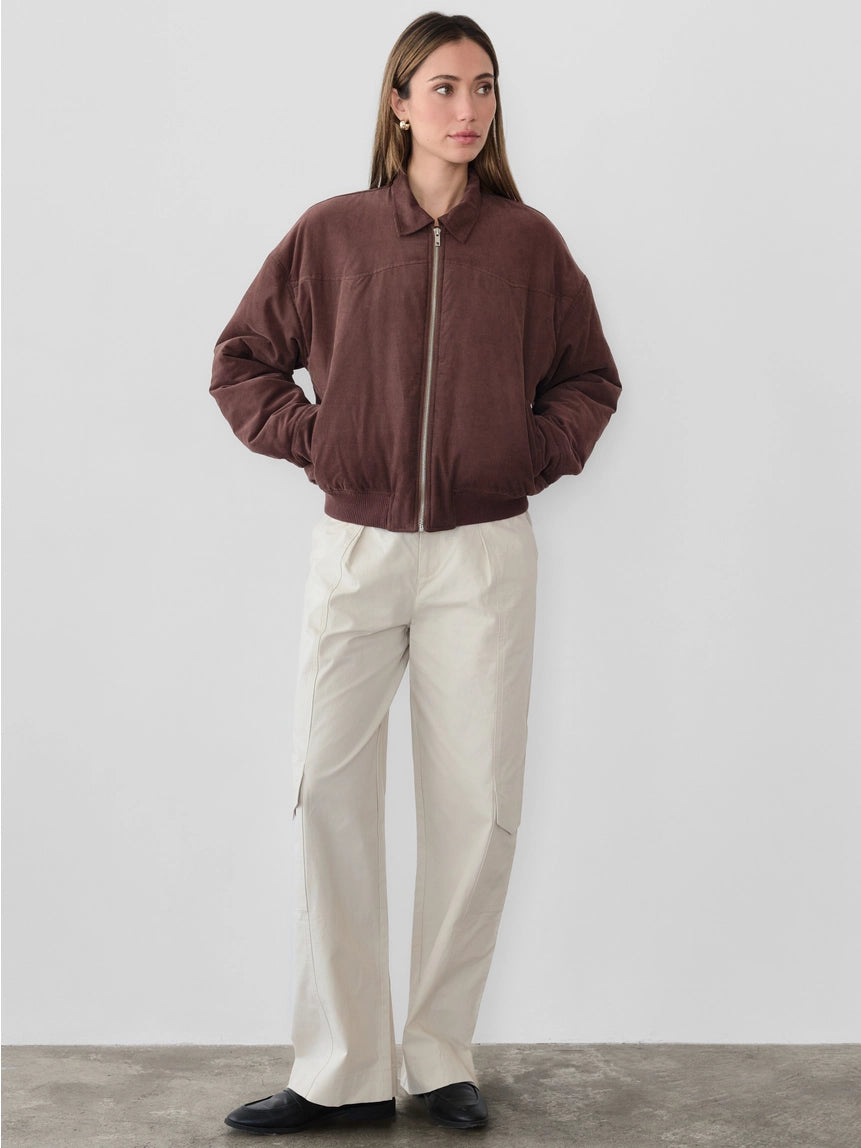 The Kade Jacket is a collared zip-up bomber jacket with a Western yoke detail that gives it a vintage look.