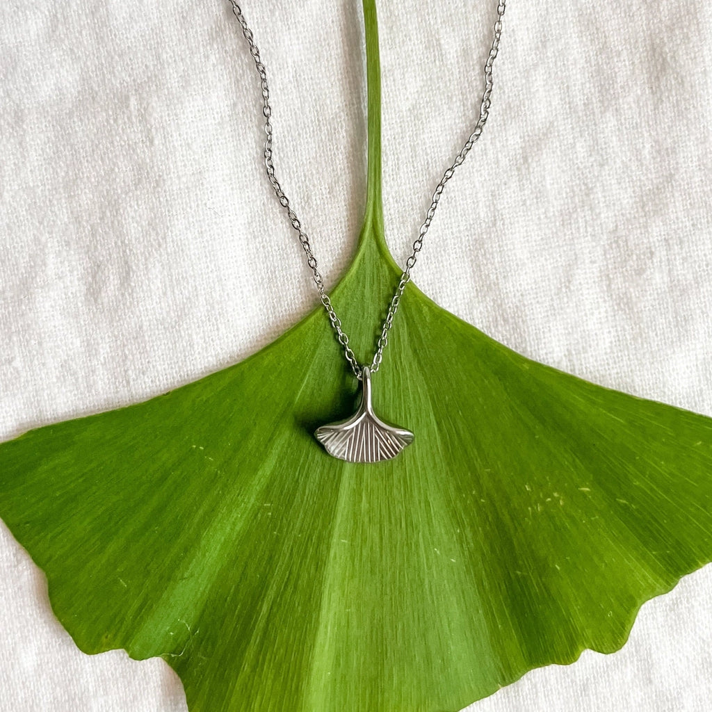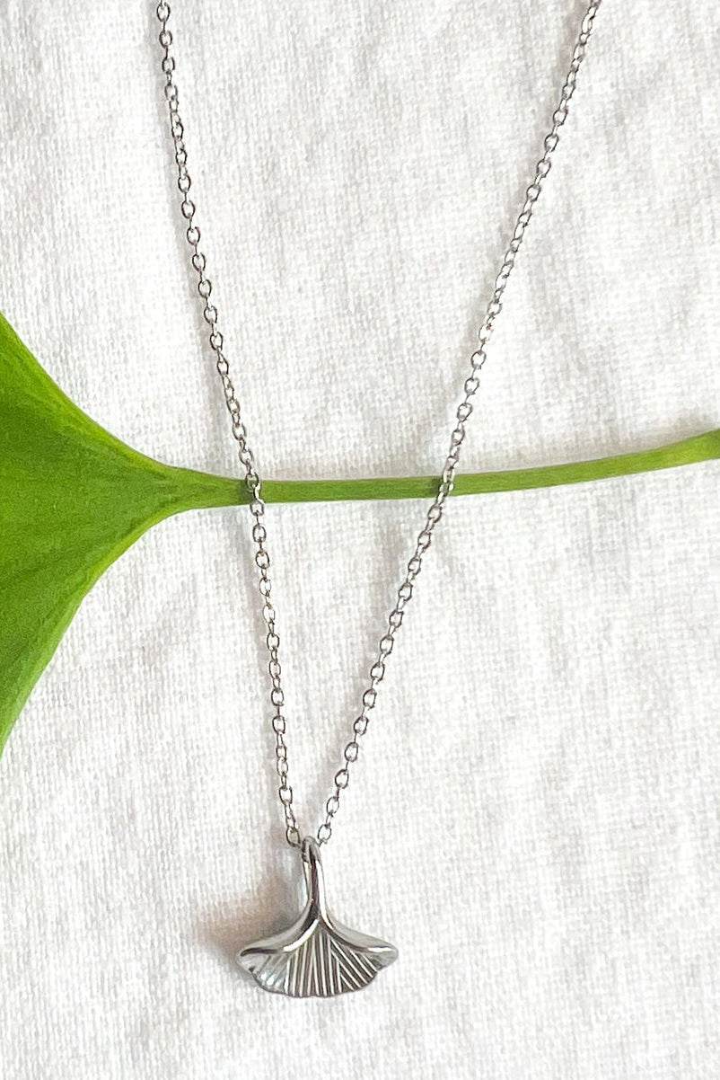 Add some nature-inspired charm to your look with our Silver Ginkgo Leaf Necklace.
