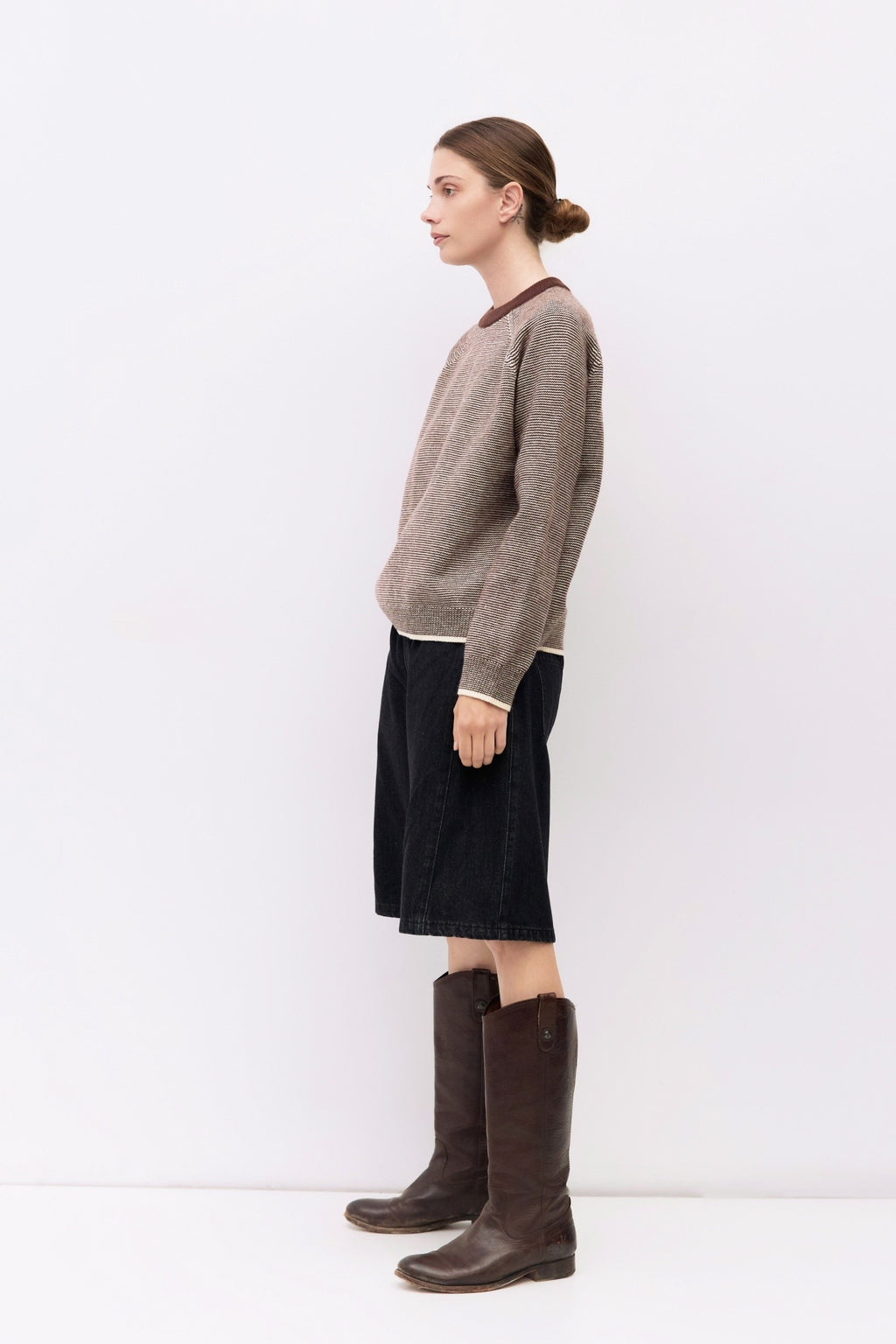 The Jae Sweater blends classic stripes with modern details, featuring a mid-heavy weight knit and contrast ribbed crewneck.