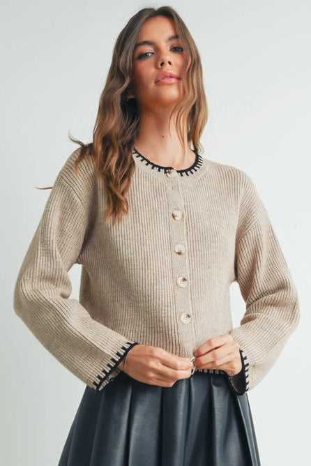 Features a timeless crewneck design and button-down front, this sweater is perfect for layering or wearing on its own.
