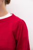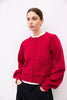 Designed with a crewneck, front button closure, and voluminous puff sleeves, it offers a relaxed silhouette with subtle structure.