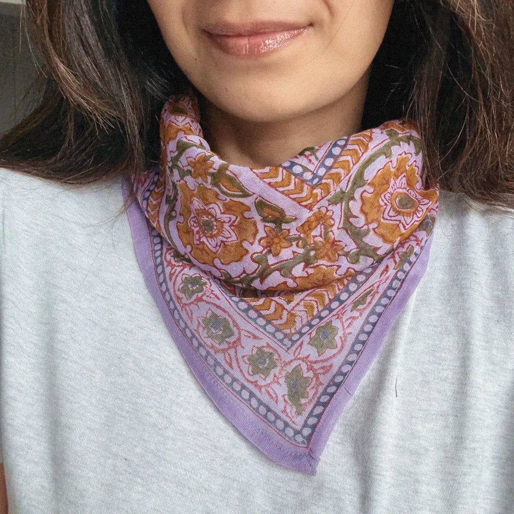 Small batch made and block printed in limited quantities. What does that mean? Each batch of bandanas is printed with the same batch of dye and then dried out together under the sunlight.