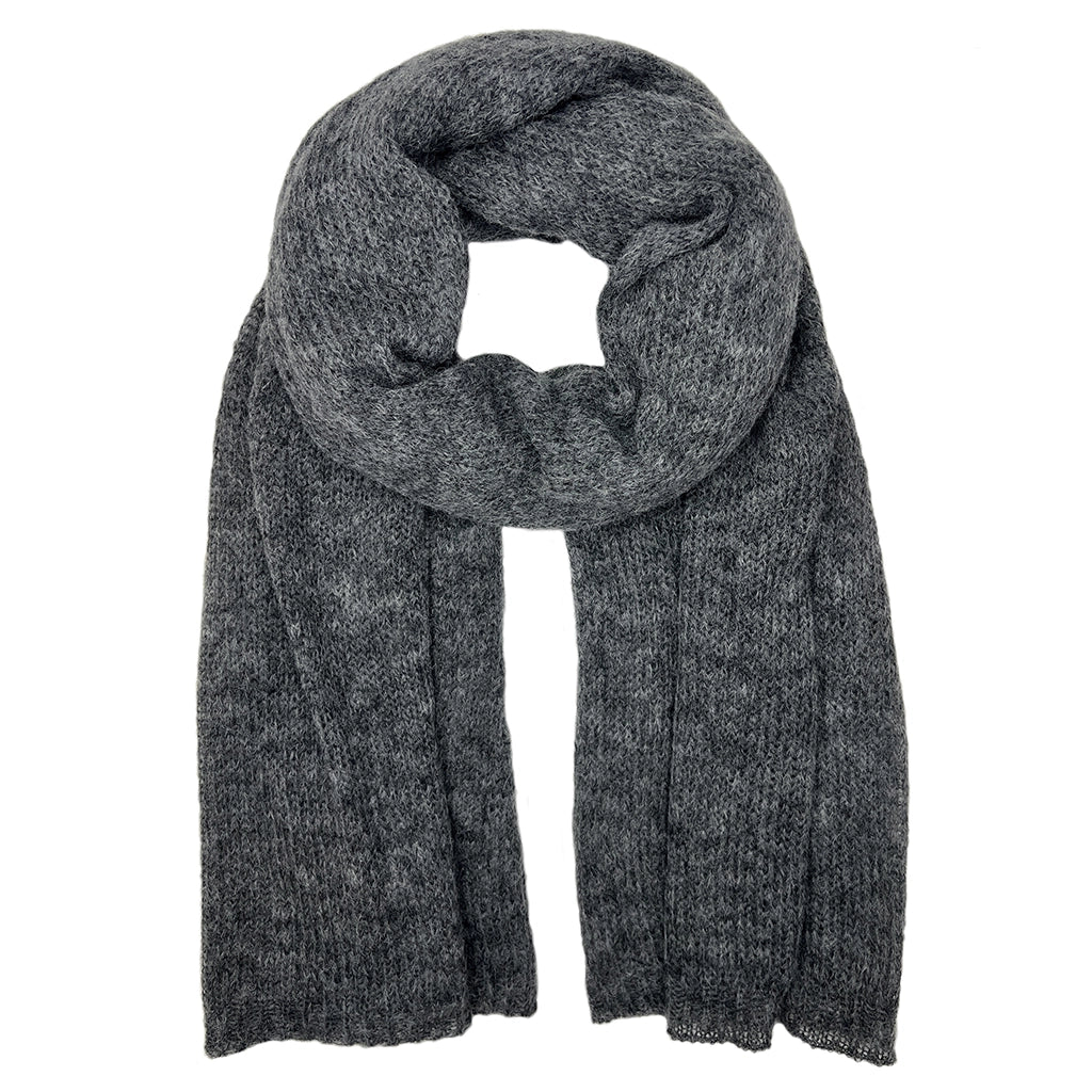 The coal gray tone complements any outfit, making it perfect for both casual and formal wear. Meticulously handwoven, this scarf showcases a subtle knit texture and a finished edge.