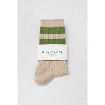 A bold varsity stripe is timeless and always a classic. Her Varsity Socks is a varsity striped version of our OG Her Socks which are classically ribbed, perfect height, cotton blend durable, chic go to socks. Add an understated sporty touch to any look with this bold stripe contrast version of Her Socks. She loves to be worn with a mini skirt, plaids, and oversized cable knit sweaters.