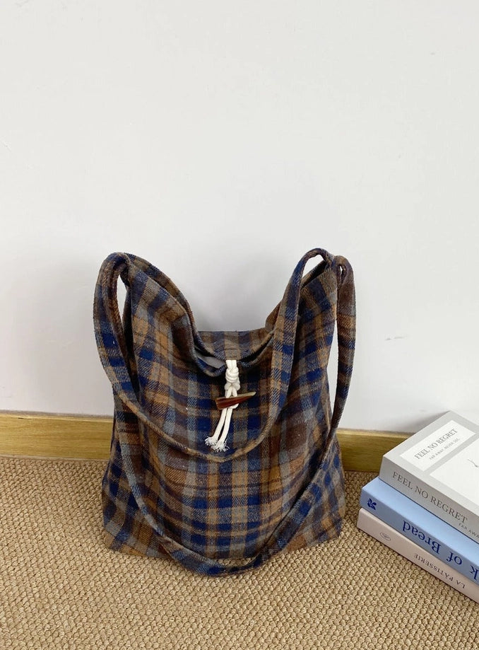 This vintage plaid tote and knotted handle tote pairs retro pattern with practical daily use. Roomy, lightweight, and easy-care—ideal for work, school, or casual outings.